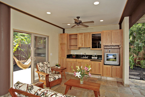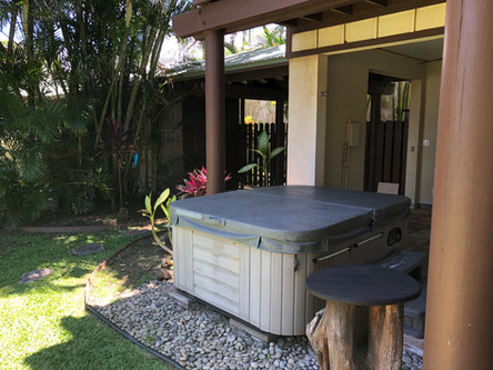 Built in 2005, The Makena Bay House has all the modern conveniences for a care-free vacation. The ground floor has an outdoor cabana that features a sitting area, a 55 inch smart TV, a wet bar with refrigerator, a gas BBQ grill, and a full bathroom. The washer and dryer are also located on the ground floor. The heated outdoor shower and hot tub are in a perfect spot to enjoy a gorgeous Maui sunset.